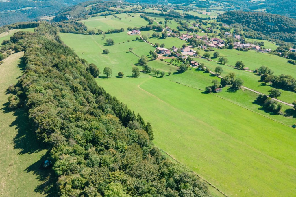 Par-delà cette disposition générale, la topographie donne à voir deux rides montagneuses, parallèles, étroites (moins de 1,5 km de largeur), couvertes de forêts, dominant les plateaux d’une centaine de mètres. Il s’agit de faisceaux typiques de la géomorphologie du massif du Jura. Ainsi, deux unités agri-paysagères constituent le terroir de la fruitière :