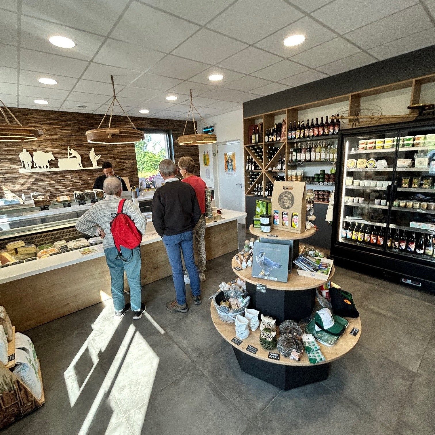 Vous pourrez trouver en plus du Comté (affiné par la maison Arnaud-Juraflore), du beurre, les autres fromages AOP régionaux et différents produits locaux et fermiers.